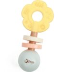 Silikoninės detalės ramina dygstančių dantukų diskomfortą, o judantis elementas padeda vaikui suprasti veiksmų rezultatą – pakračius pasigirsta švelnus garsas. Tai puikus žaislas ankstyvam motorikos, jutimų ir suėmimo vystymui.