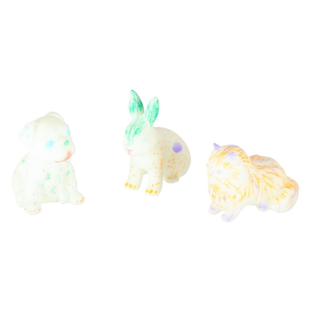 3 × Gyvūnų figūrėlės (šuniukas, kačiukas, triušiukas)