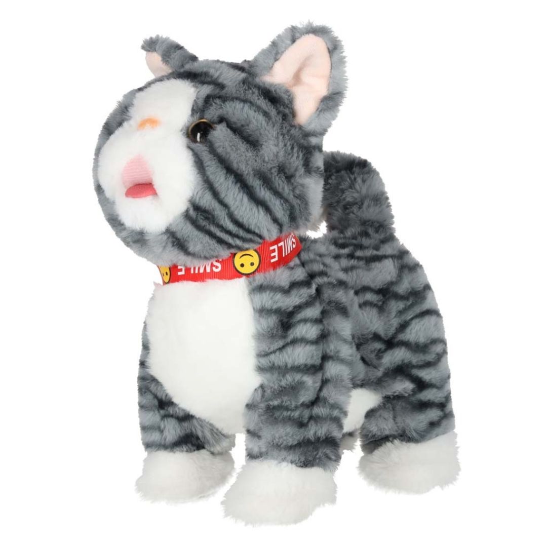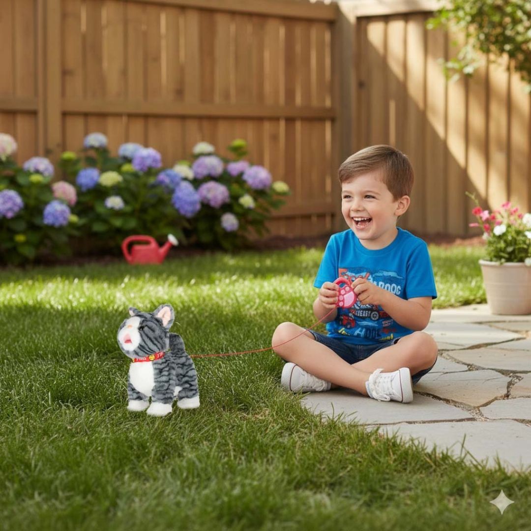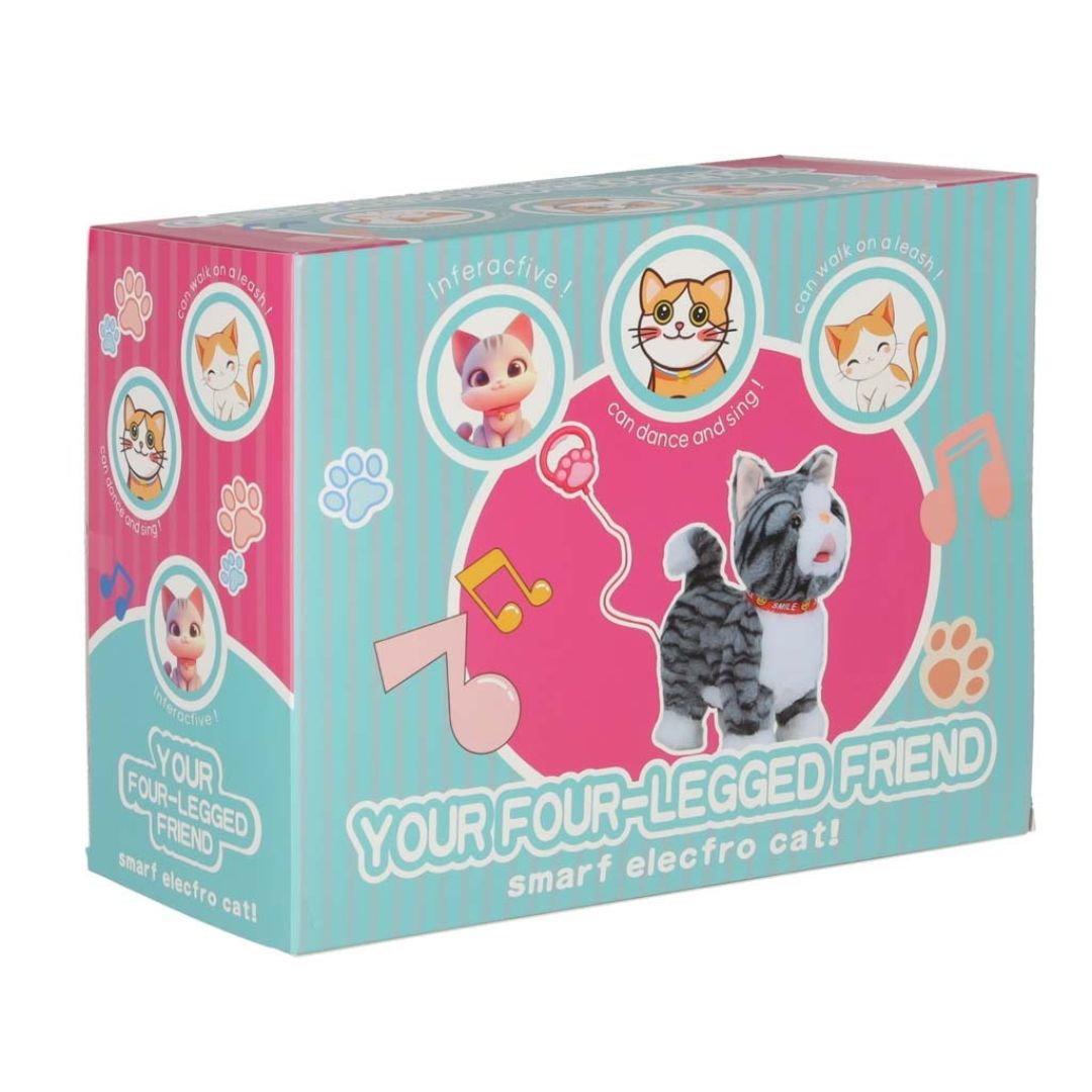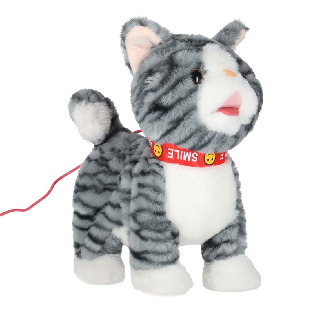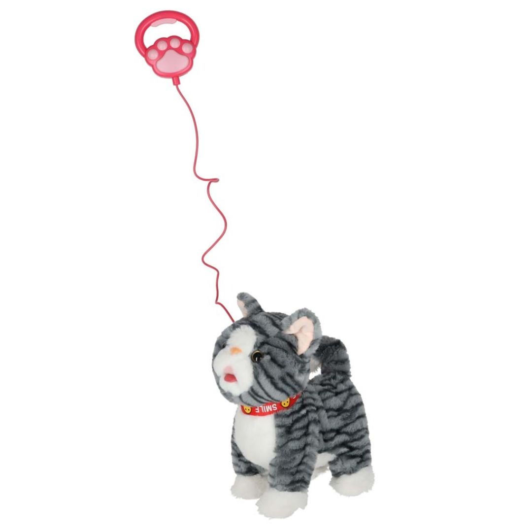 Interaktyvi žaislinė katė su pavadėliu – tai minkštas, judantis ir garsus skleidžiantis žaislas, kuris leidžia vaikui patirti „tikro augintinio“ priežiūros žaidimą.