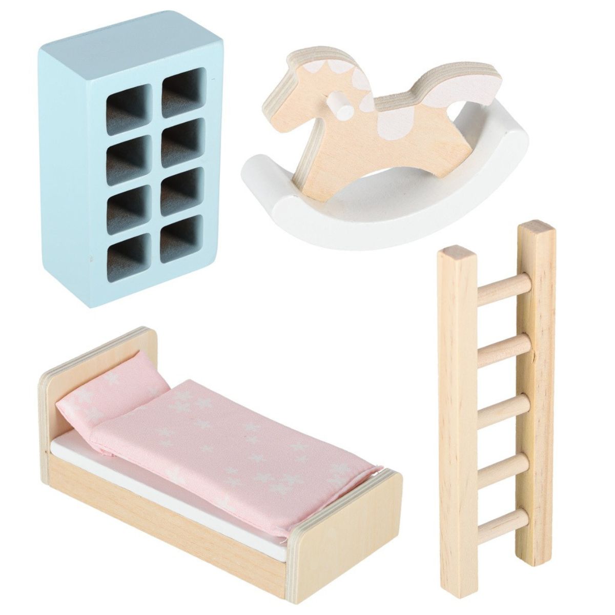 Lėlių namelis lagamine su mediniais baldais ir aksesuarais (25 det.)