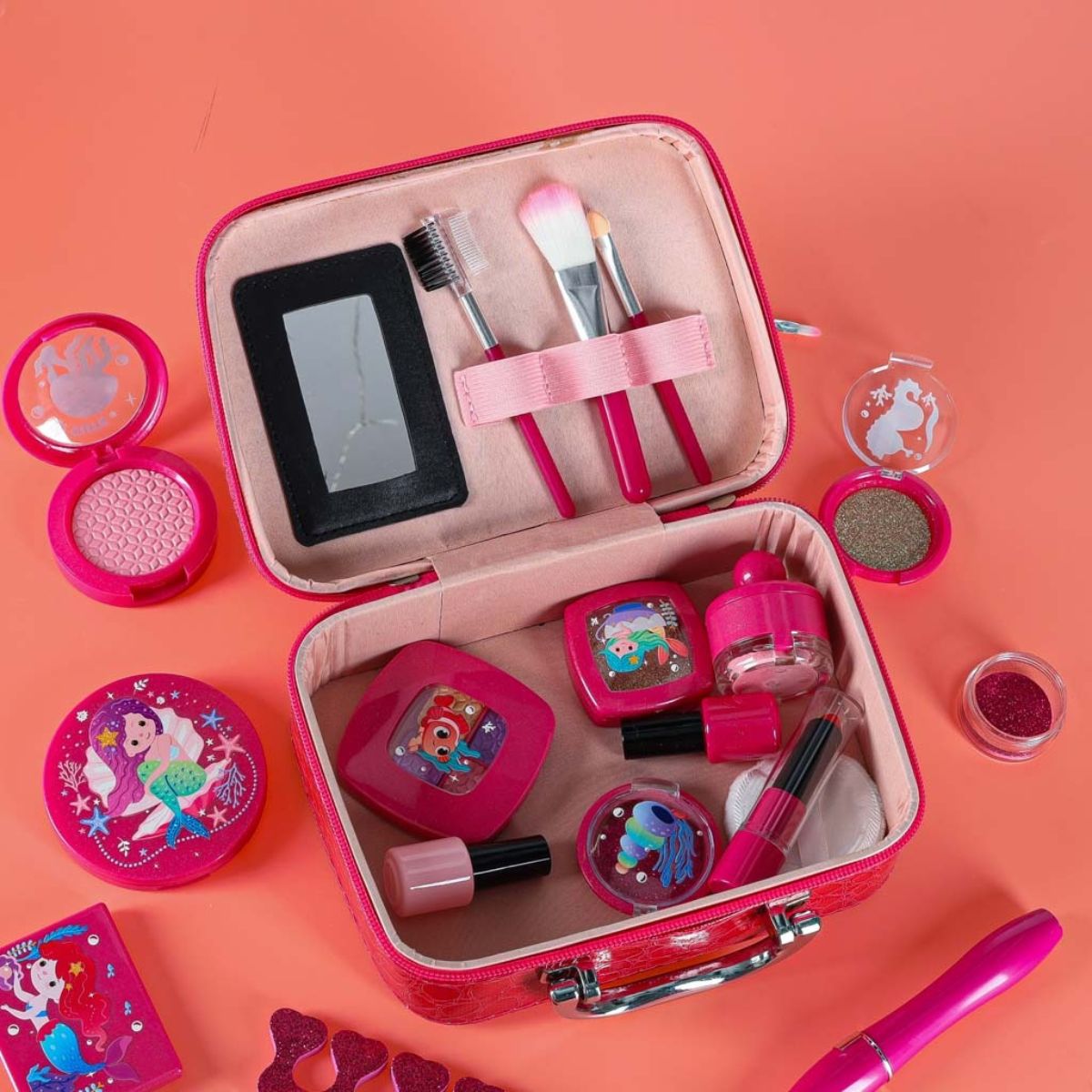 Makiažo rinkinys mergaitėms su lagaminu ir priedais – tai kūrybinis žaidimų rinkinys, leidžiantis vaikui pasinerti į grožio pasaulį per saugų vaidmenų žaidimą.