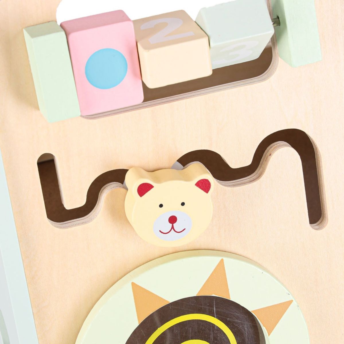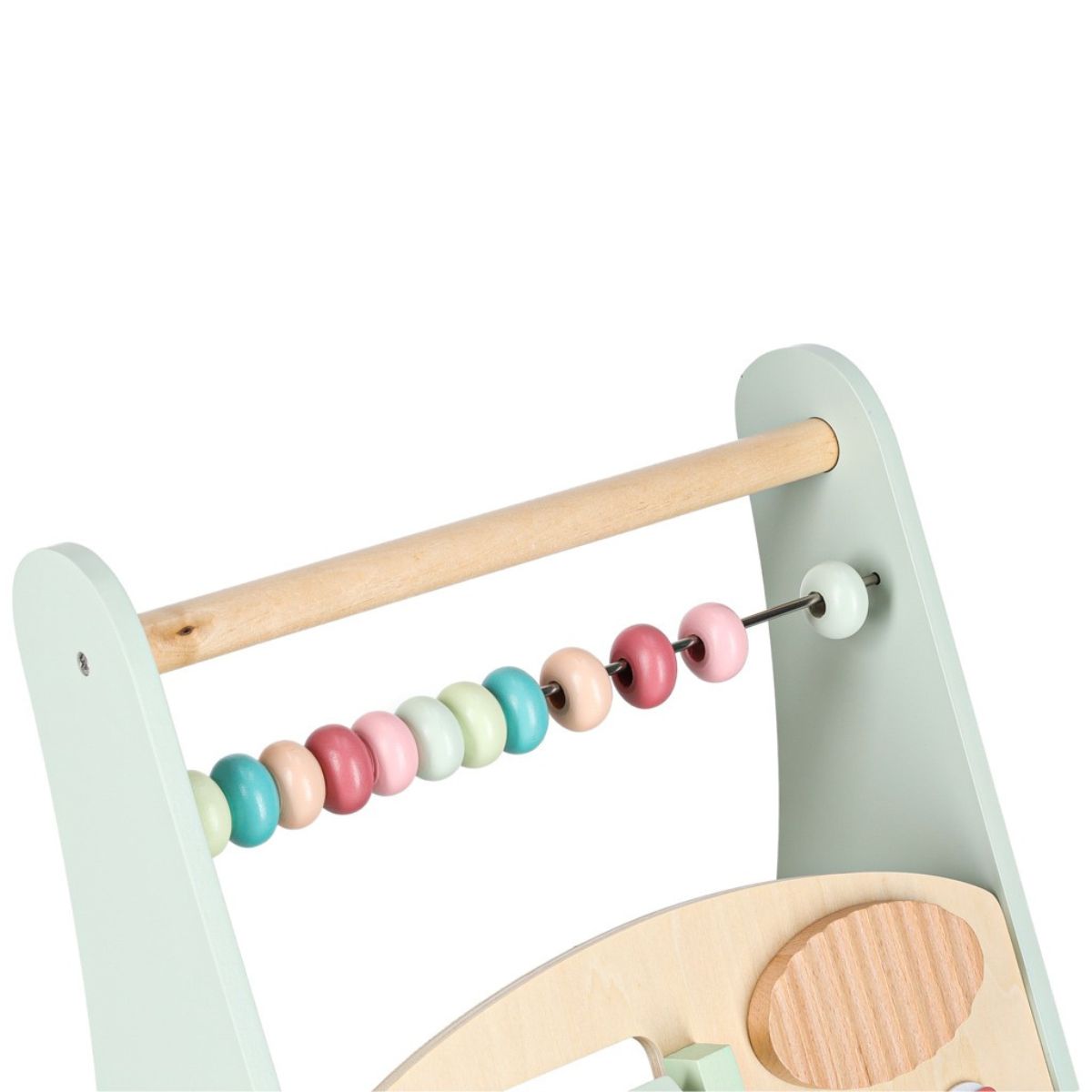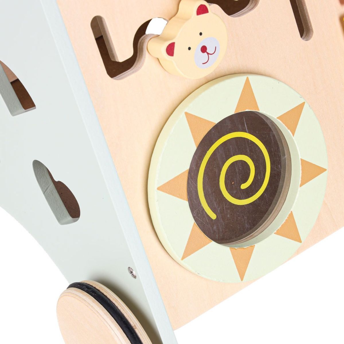 Ant lentos įrengtos įvairios lavinamosios veiklos, kurios kviečia vaiką tyrinėti ir mokytis per žaidimą. Stumdomi karoliukai leidžia judinti detales ir susipažinti su skaičiavimo pagrindais.