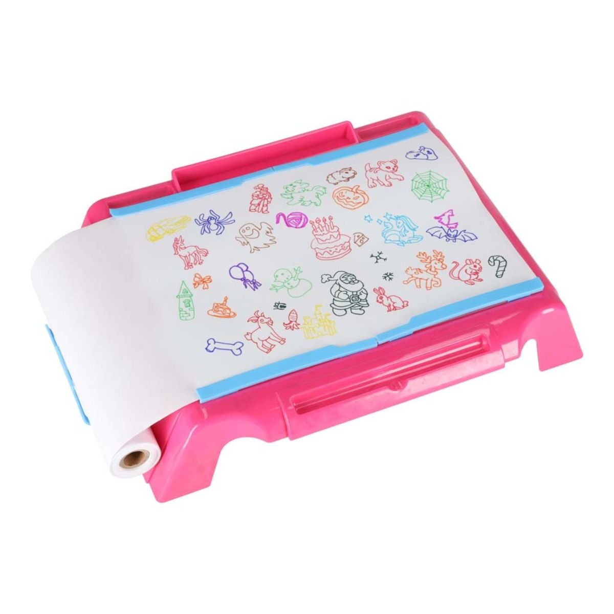 Reguliuojamas fokusas leidžia išgauti aiškesnį vaizdą ir patogiai pritaikyti piešimą prie vaiko įgūdžių. Rinkinyje esantys piešimo lapai su motyvais suteikia daug idėjų, o popieriaus rulonas leidžia piešti ilgiau be dažno lapų keitimo.
