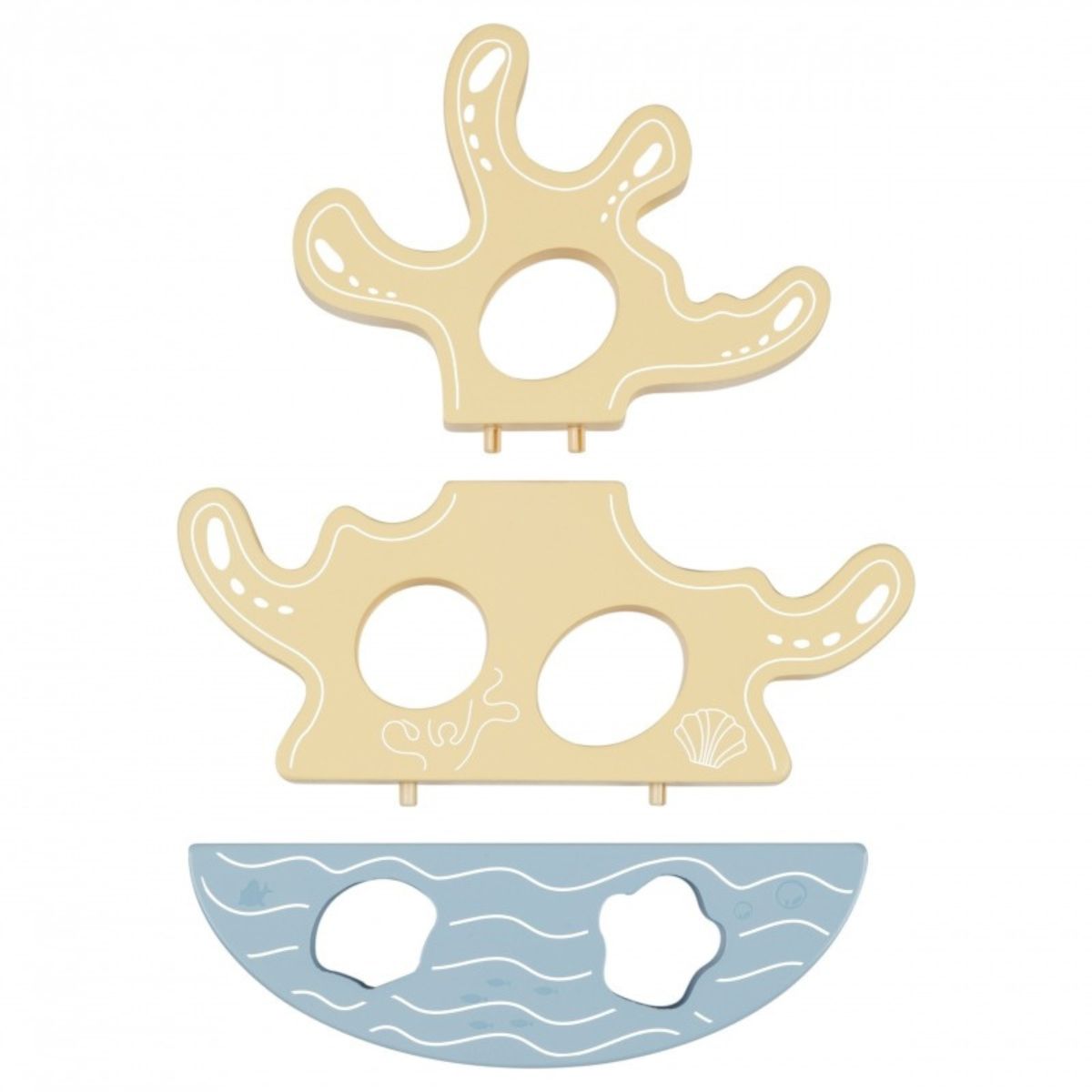 Medinės figūrėlės pritaikytos mažoms rankytėms – jas patogu paimti, laikyti ir perkelti. Vaikas gali gaudyti žuveles, statyti rifą ar kurti savo istorijas apie jūros pasaulį.