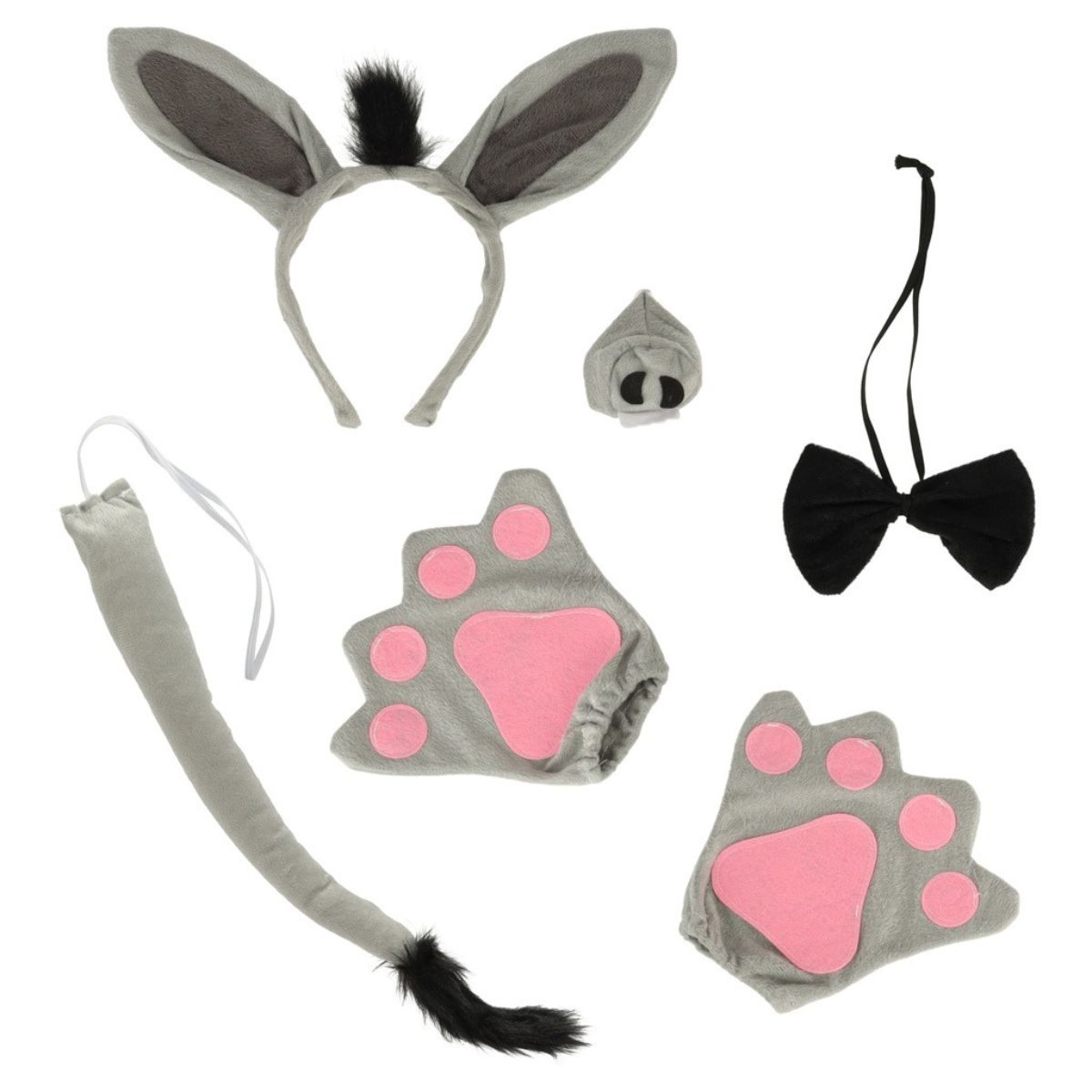 Kostiumą sudaro sijonas su elastine juosta, lankelis su ausimis, kaukė-snukutis, varlytė, letenėlių pirštinės ir uodega, todėl vaikas gali susikurti pilną įvaizdį be papildomų detalių.