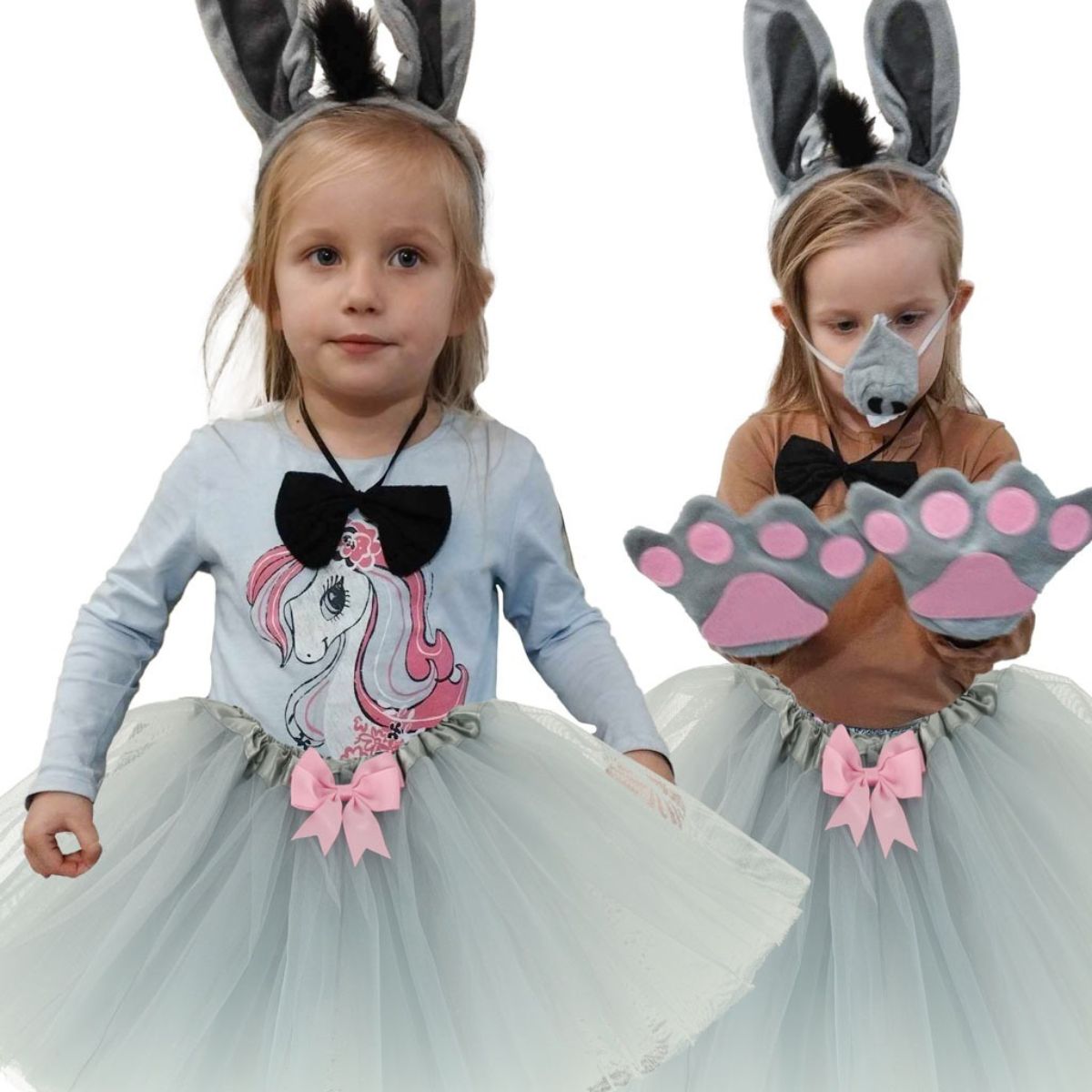 Asiliuko kostiumas su tiulio sijonu ir priedais skirtas karnavalams, darželiams, teminiams vakarėliams ir vaidmenų žaidimams, kai vaikas įsikūnija į gyvūno personažą.
