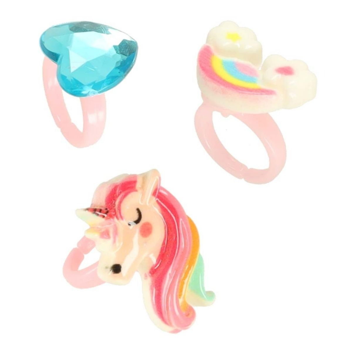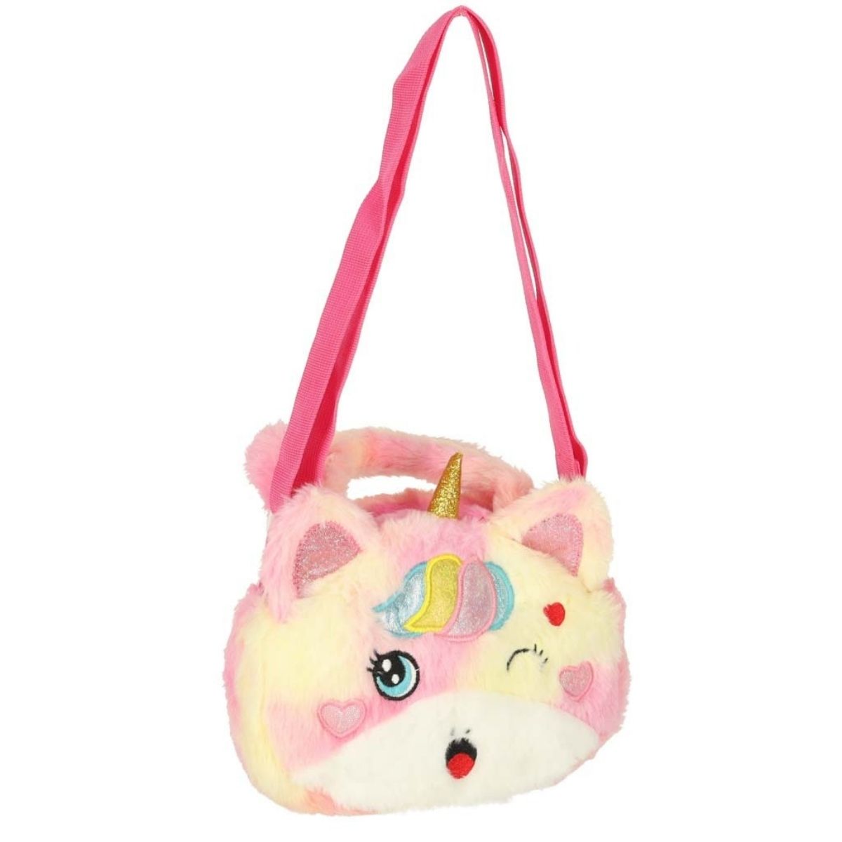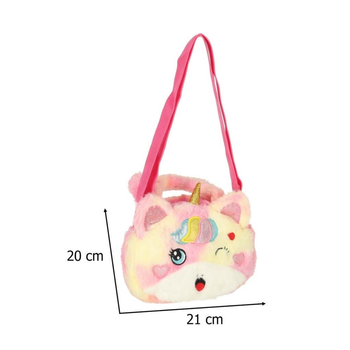 Makiažo rinkinys patogiai sudėtas į mielą rankinę su vienaragio motyvu, todėl jį lengva pasiimti į svečius ar keliones.
