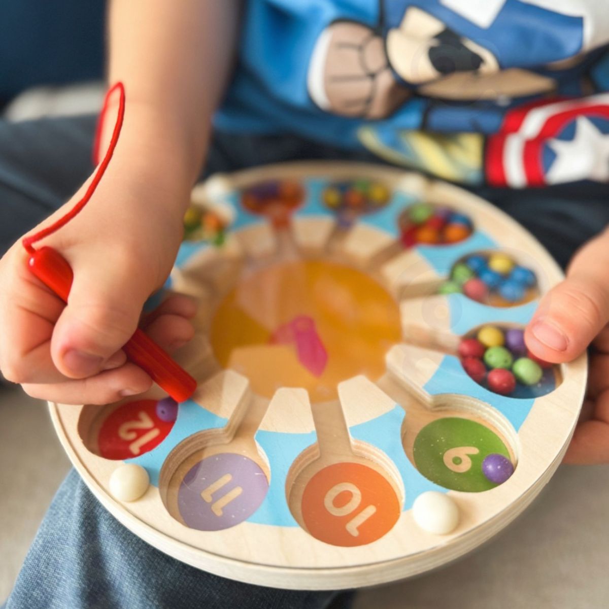 Naudodamas magnetinę lazdelę, vaikas gali tiksliai valdyti kamuoliukus ir perkelti juos per visą labirintą, lavindamas judesių kontrolę ir susikaupimą.