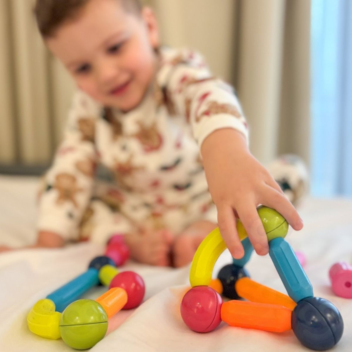Stiprūs magnetai užtikrina stabilų detalių sujungimą, todėl konstrukcijos lengvai surenkamos ir išlaiko formą. Skirtingų formų ir spalvų detalės skatina kūrybiškumą ir leidžia eksperimentuoti su įvairiais deriniais.