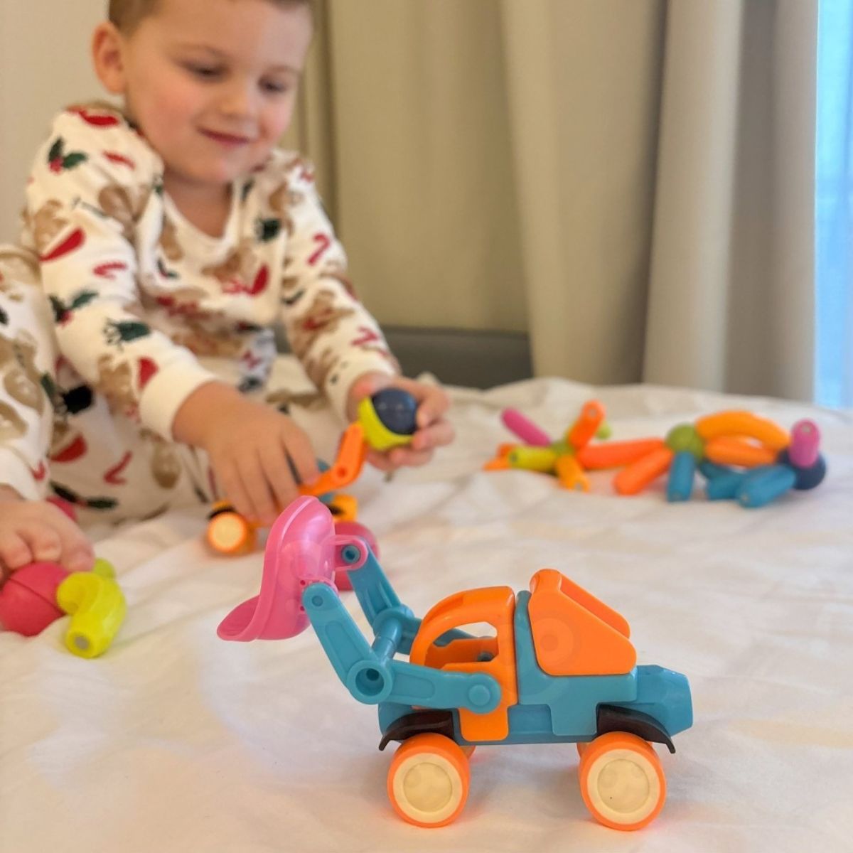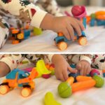 Vaikas gali jungti magnetines detales, formuoti automobilius, sunkvežimius ar kitus modelius ir kurti savo žaidimo scenarijus.
