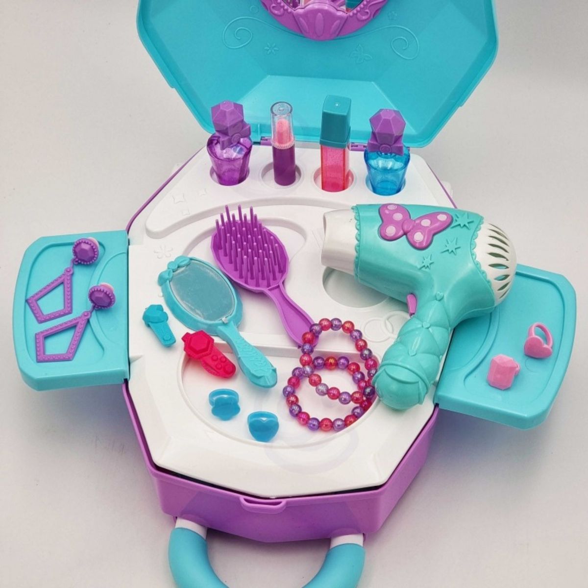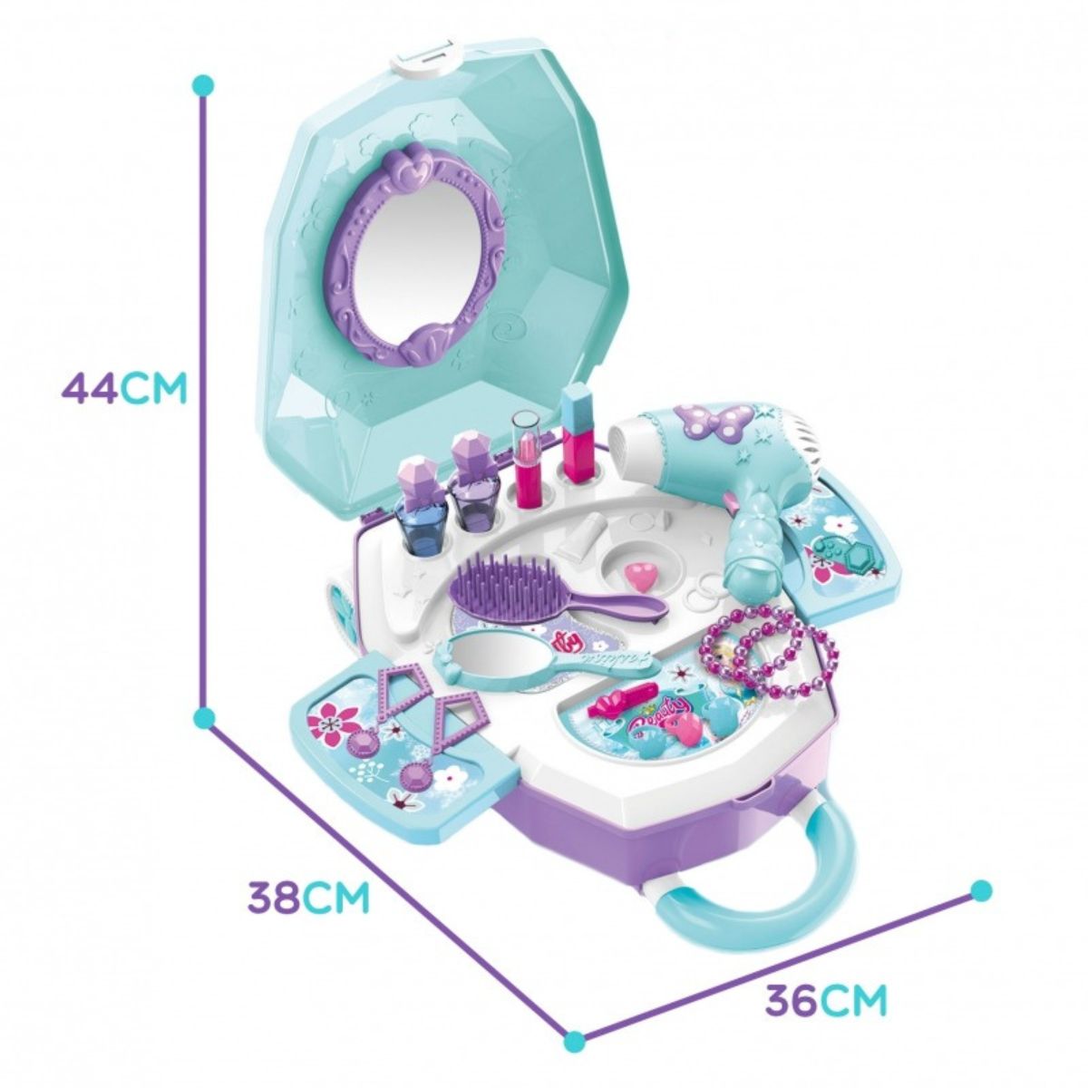 Atidarius lagaminą, vaikas randa veidrodėlį, išskleidžiamą staliuko paviršių ir daugybę grožio aksesuarų, leidžiančių pasinerti į stilisto, kirpėjos ar princesės vaidmenį.