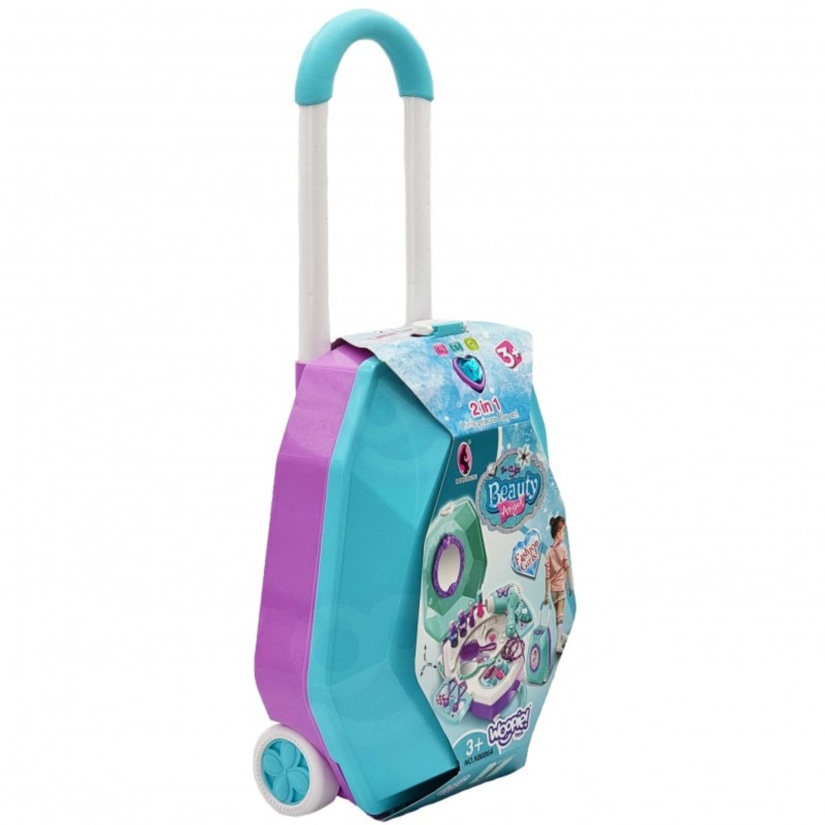 Kosmetinis staliukas 2in1 „Grožio salonas“ – tai kūrybiškas vaidmenų žaidimų rinkinys, kuris vienu metu atlieka dvi funkcijas: uždaras lagaminas su ratukais ir pilnai išskleidžiamas grožio salonas.