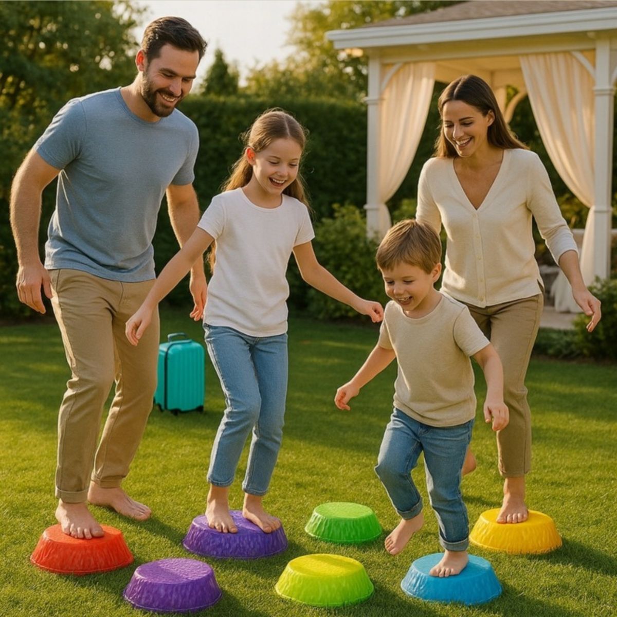 Šie sensoriniai pusiausvyros akmenys tinka žaidimams tiek namuose, tiek lauke – jie stabilūs ant įvairių paviršių, tokių kaip kilimas, grindys, kilimėlis ar žolė.