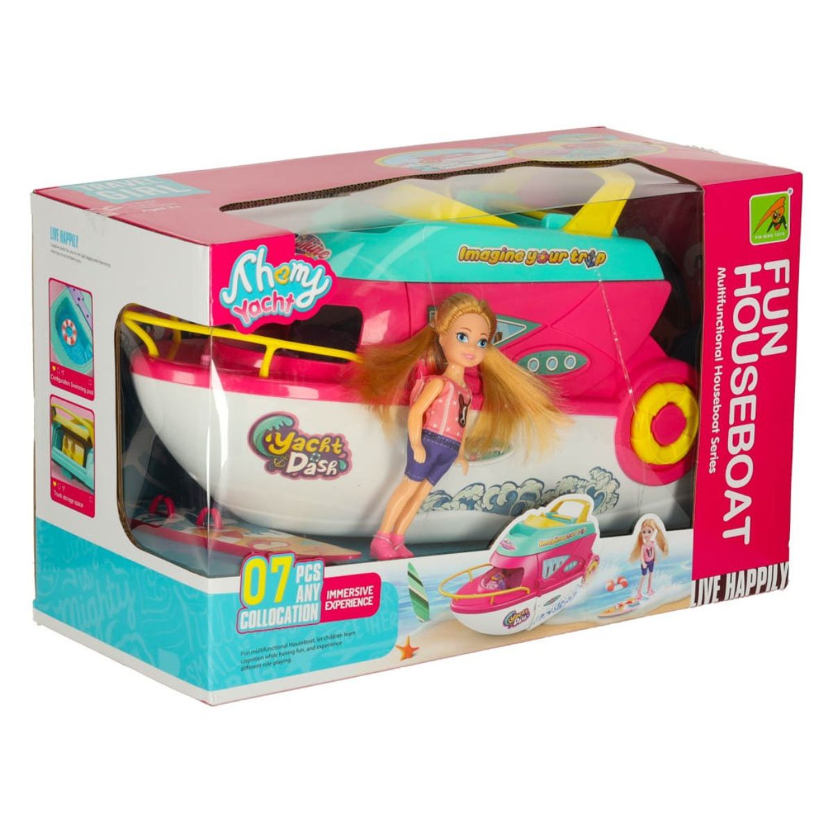 Žaislinė lėlių jachta - valtis su priedais vaikams