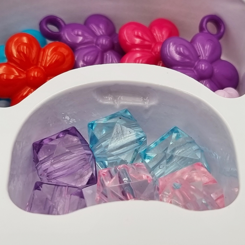 Papuošalų kūrimo rinkinys su karoliukais – kūrybiškas užsiėmimas vaikams, mėgstantiems kurti, derinti spalvas ir gaminti savo papuošalus. Vaikas gali sukurti įvairias apyrankes, pakabukus ar žiedelius, derindamas skirtingus karoliukus, formeles ir pakabukus. Rinkinys lengvas, patogus neštis, o pakuotė veikia kaip mažų detalių laikymo dėžutė.