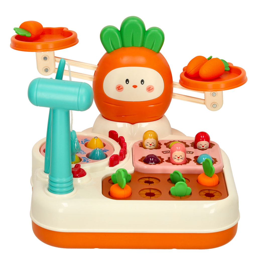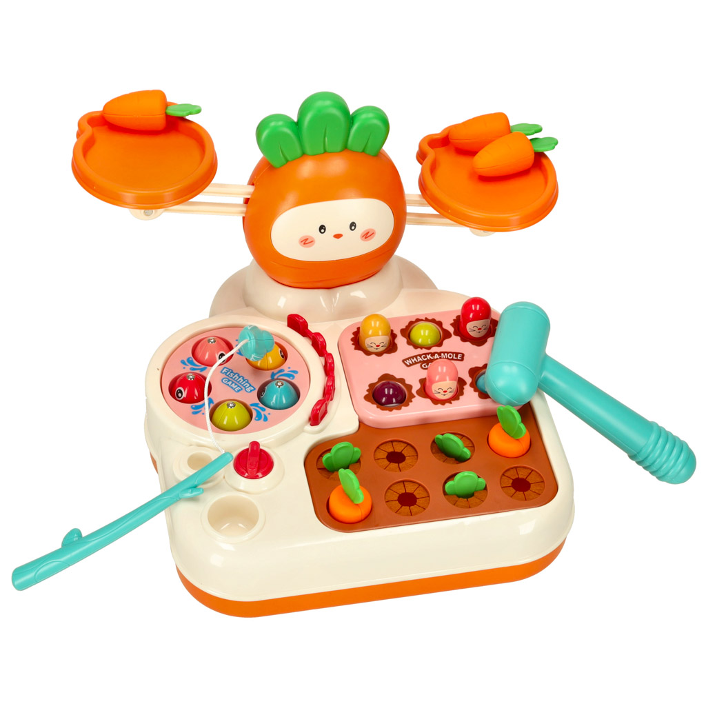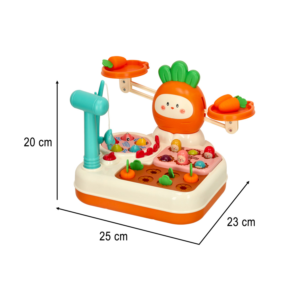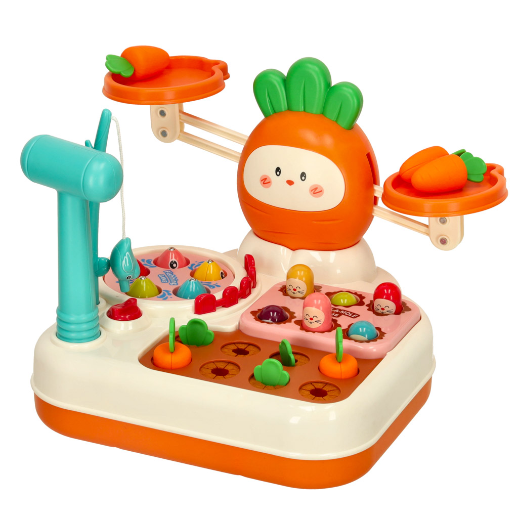 Daugiafunkcinis interaktyvus žaidimų rinkinys – tai daugybę veiklų apimantis žaislas, kuris ugdo loginį mąstymą, koordinaciją ir motoriką. Žaidimų bazėje sujungtos kelios interaktyvios veiklos: žvejybos žaidimas, morkų rinkimas, „kurmis“ smūgiavimo žaidimas bei pusiausvyros svarstyklės.
