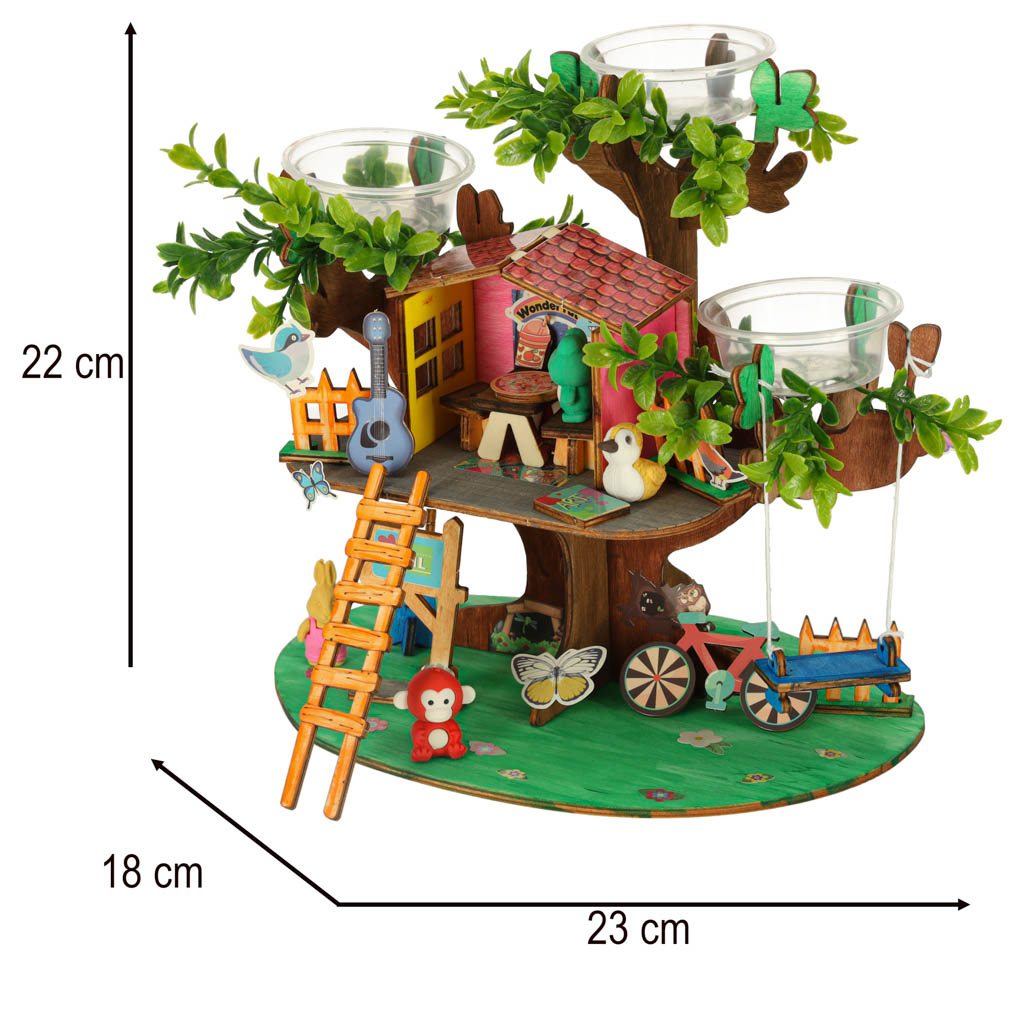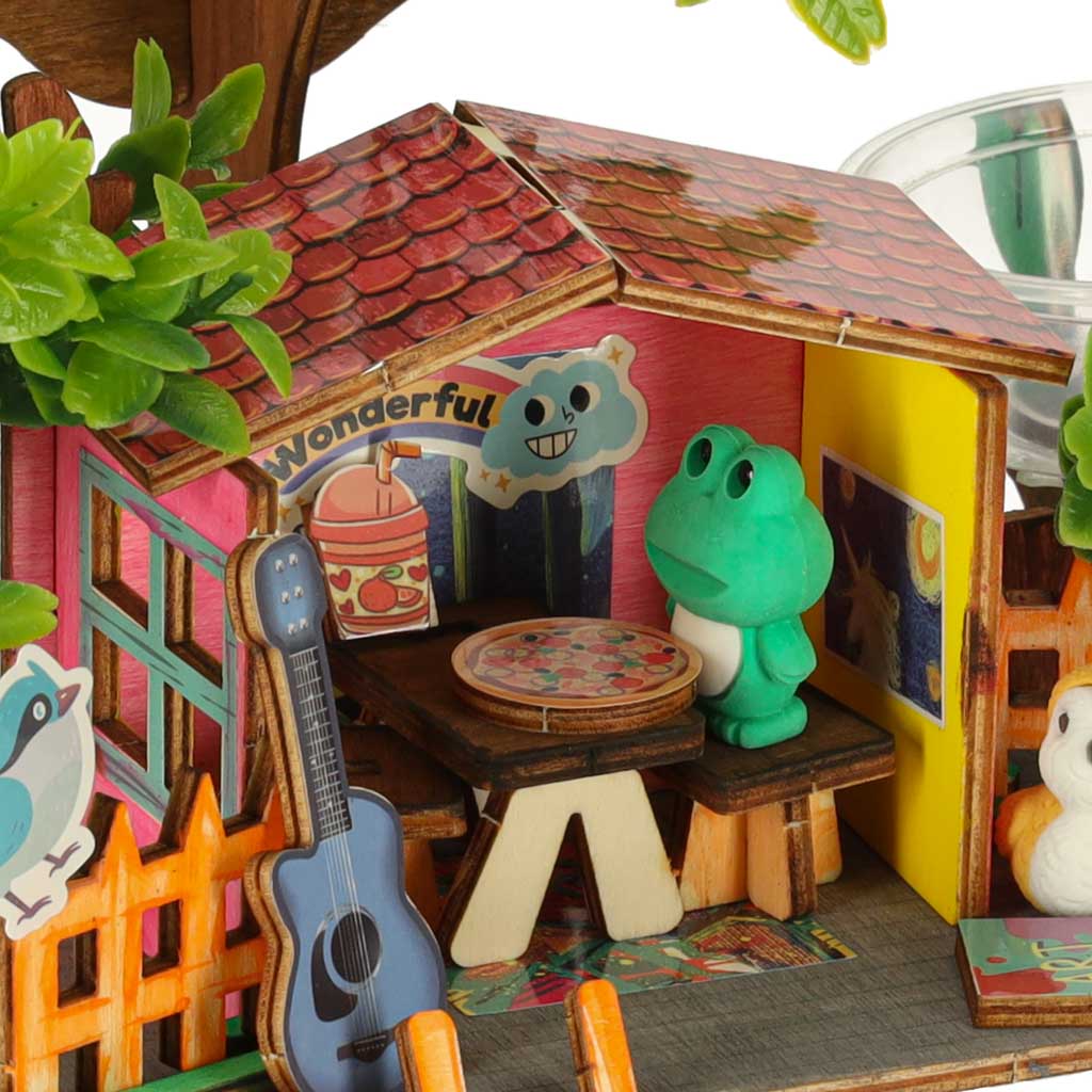 Kūrybinis rinkinys „Namelis medyje“ suteikia vaikams galimybę sukurti savo unikalią medinę konstrukciją – namelį ant medžio. Vaikai patys surenka konstrukciją iš medinių detalių, o vėliau ją dekoruoja rinkinyje esančiais dažais, lipdukais ir dirbtiniais augalais.
