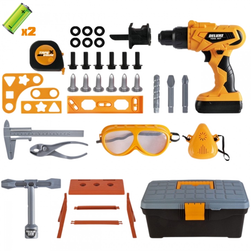 Mažojo meistro įrankių rinkinys su laikymo dėže – tai puikus žaislas vaikams, mėgstantiems konstruoti, taisyti ir mėgdžioti suaugusiųjų veiklą. Rinkinyje esantis žaislinis elektrinis suktukas su keičiamais antgaliais leidžia vaikui sukti varžtus, jungti detales ir atlikti paprastas taisymo užduotis.