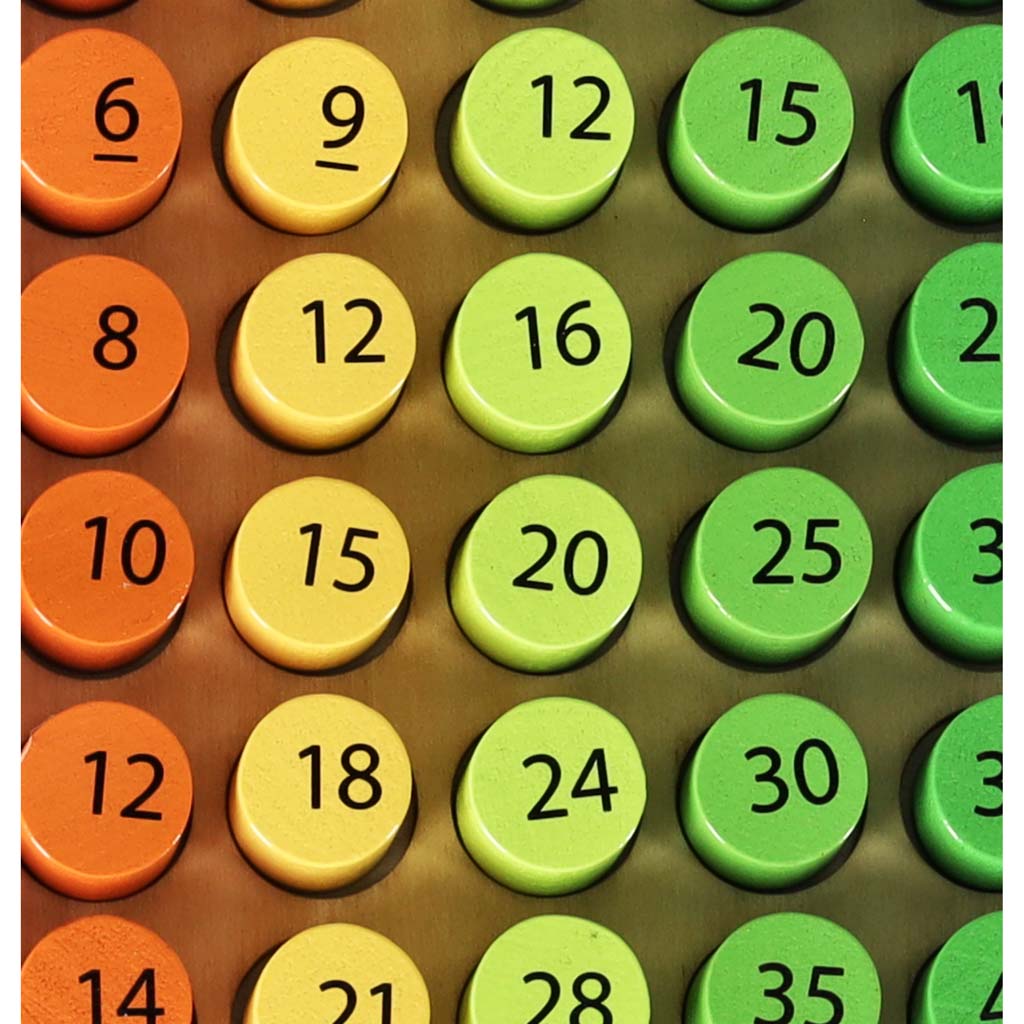 Medinė edukacinė dėlionė „Daugybos lentelė“ su spalvotais žetonais