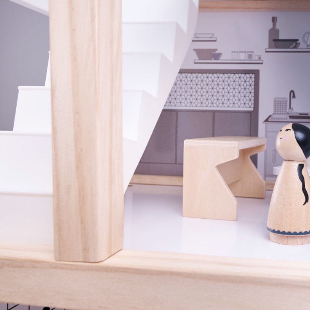 Žaisdamas vaikas lavina kūrybiškumą, vaizduotę ir gebėjimą rūpintis tvarka, o įvairūs kambariai – svetainė, virtuvė, vonia, darbo kambarys ir miegamasis – suteikia daugybę galimybių vaidmenų žaidimams. Neutralios baltai pilkos spalvos puikiai dera prie bet kokio vaiko kambario interjero.