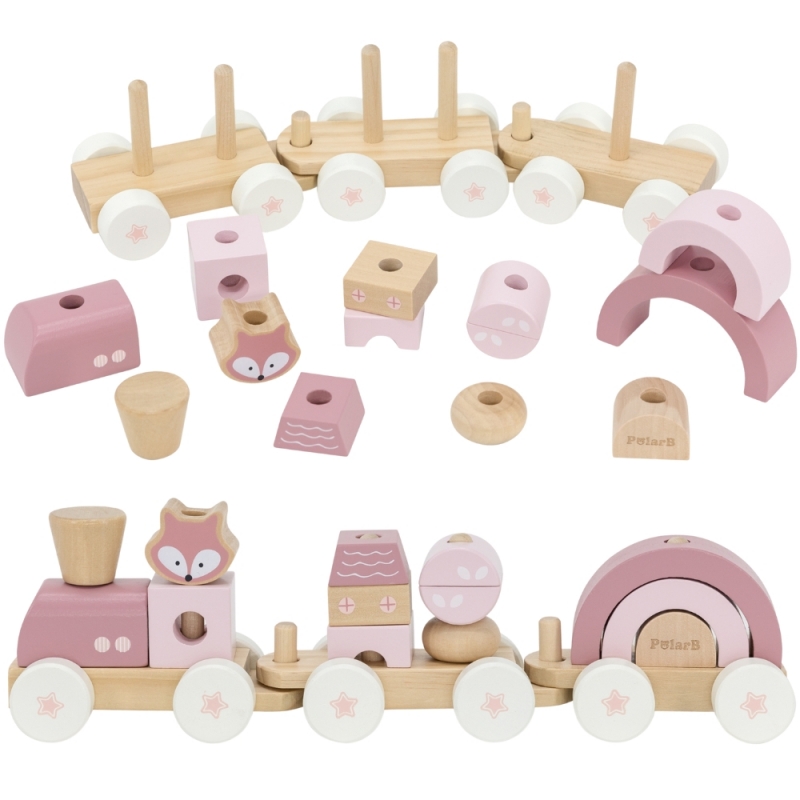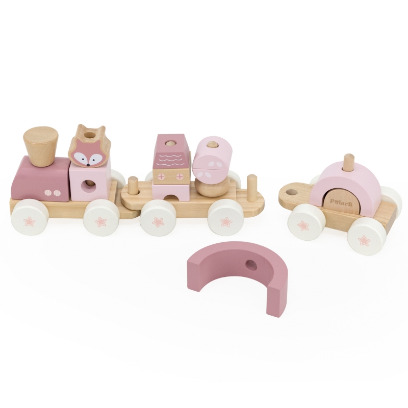 Medinis traukinukas su kaladėlėmis (17 det.), rožinis