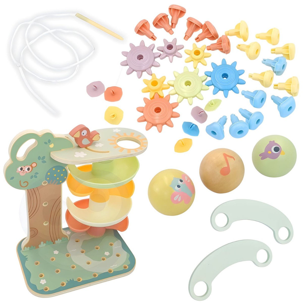 Montessori kamuoliukų takelis "Gamtos medis" 4in1