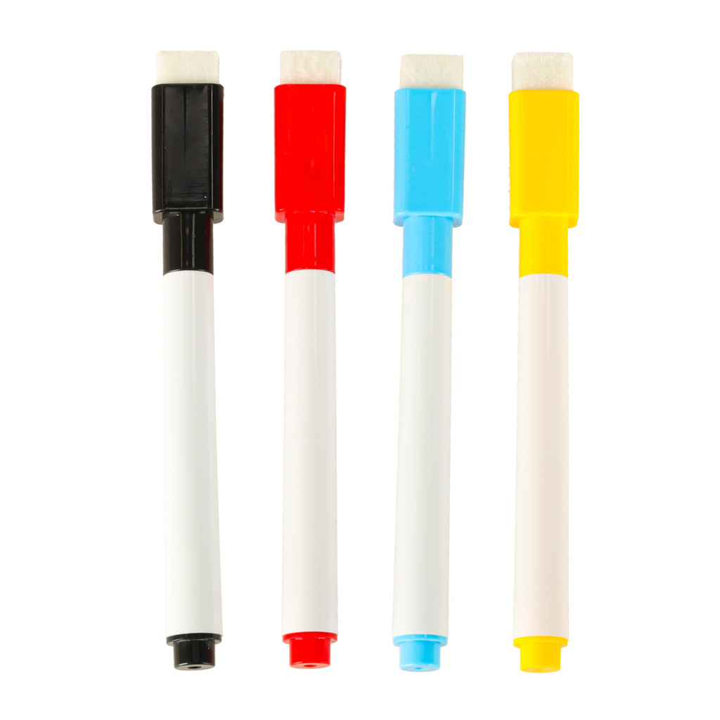 – 4 sauso rašymo markeriai su trintukais
