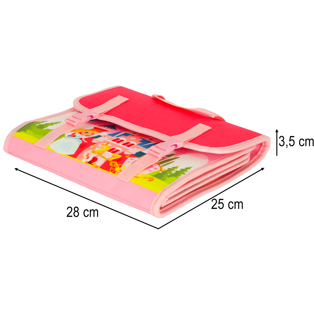 Montessori veiklos lagaminas „Princesės“ – tai sensorinis žaislas vaikams, padedantis lavinti motoriką, loginį mąstymą ir savarankiškumą. Lagamino formos konstrukcija su reguliuojamais dirželiais leidžia jį patogiai nešiotis, kaip kuprinę ar naudoti namuose kaip lavinamąją knygelę.