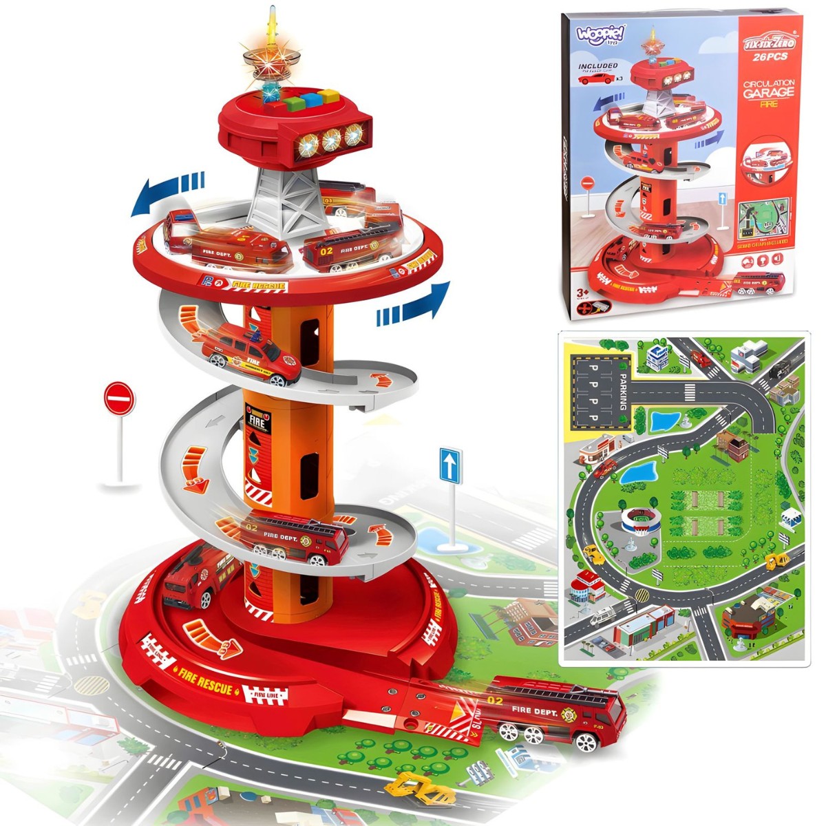 Spiralinė trasa su garažu automobiliams "Ugnegesių komanda"