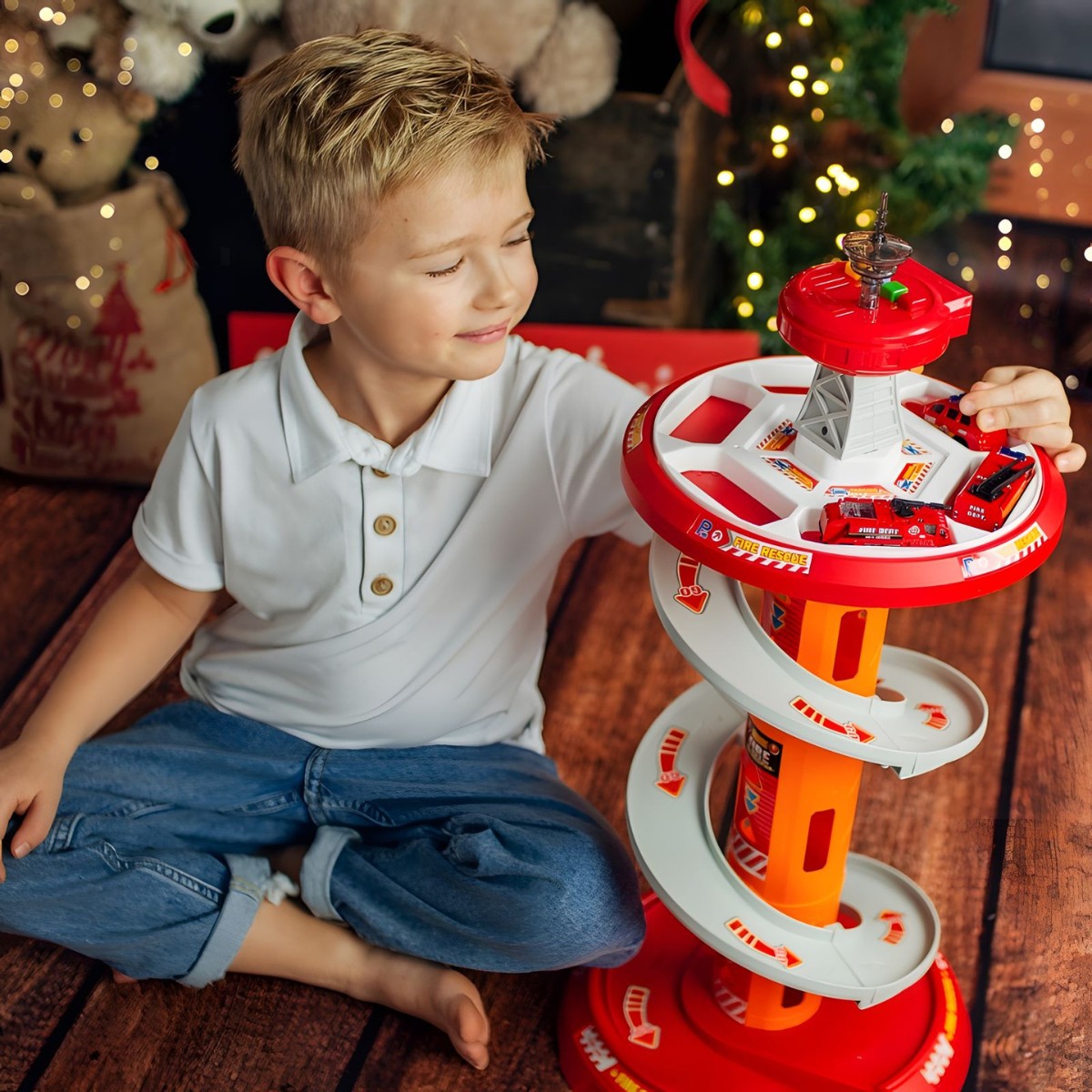 Spiralinė trasa su garažu automobiliams „Ugnegesių komanda“ – įtraukiantis žaislas mažiesiems gelbėtojams! Daugiaaukštis garažas su garso ir šviesos efektais leis vaikui pasijusti tikru ugniagesiu, o spiralinis nusileidimo kelias suteiks žaidimui dinamikos ir emocijų.